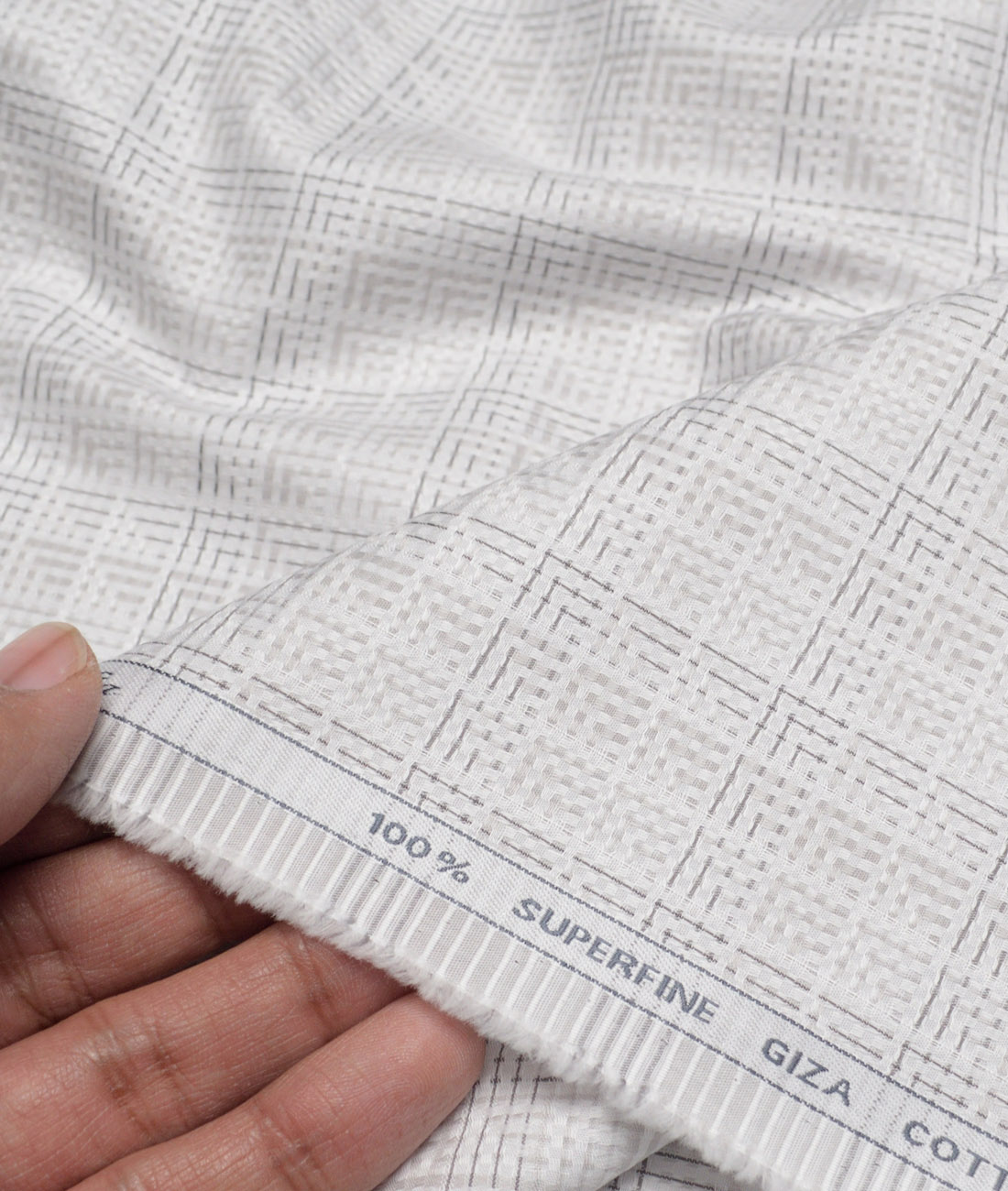 Tessitura Monti Giza Cotton Checks Shirting Fabric (White & Grey)