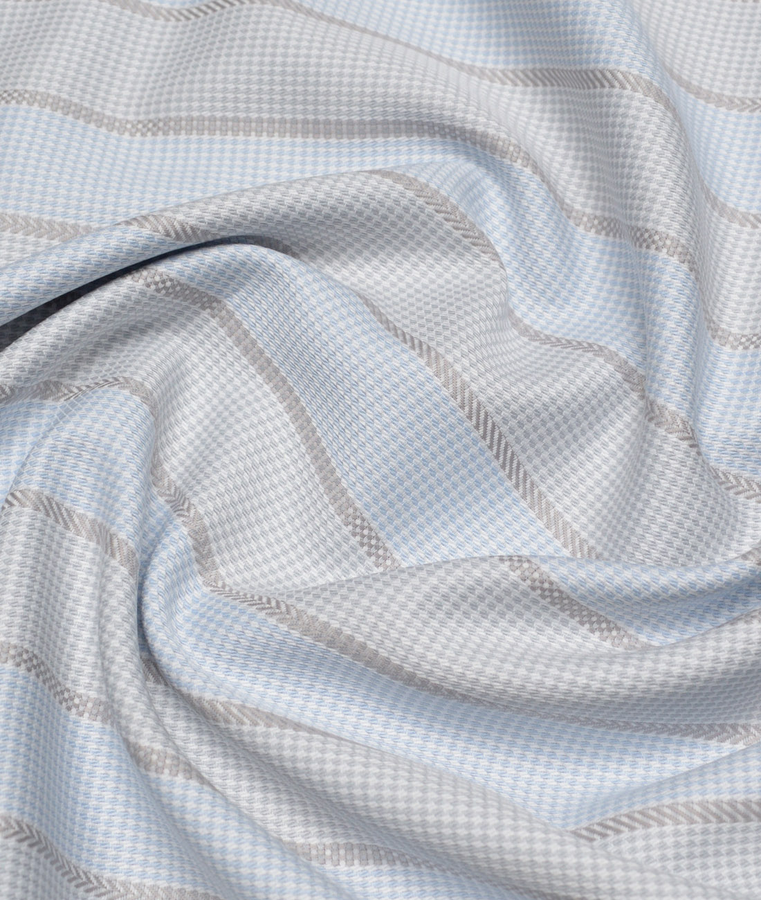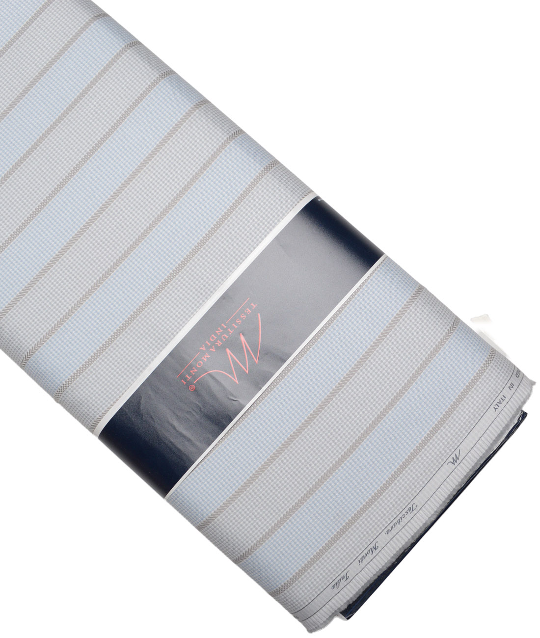 Tessitura Monti Giza Cotton Striped Shirting Fabric (Grey & Sky Blue)