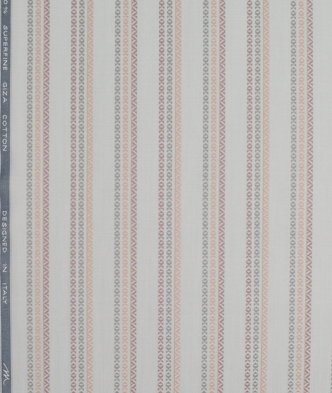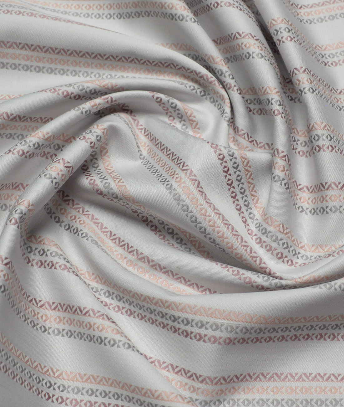 Color: Light Grey base with Peach, Grey & Turkish Rose Jacquard Weave Stripes,