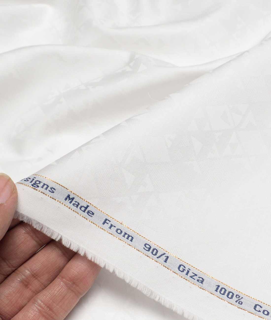 Tresca by Arvind 1 Ply 90’s Giza Cotton Self Design Shirting Fabric (White)