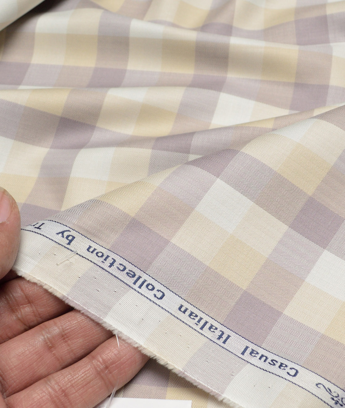 Tresca by Arvind Cotton Checks Shirting Fabric (Cream & Beige)