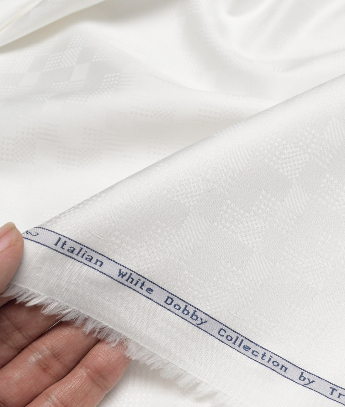 Color: White base with Self Squared Dobby,