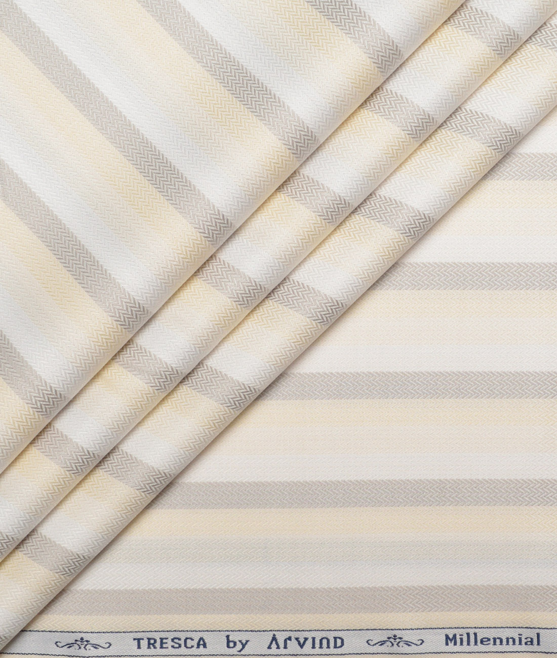 Tresca by Arvind Cotton Striped Shirting Fabric (White & Beige)