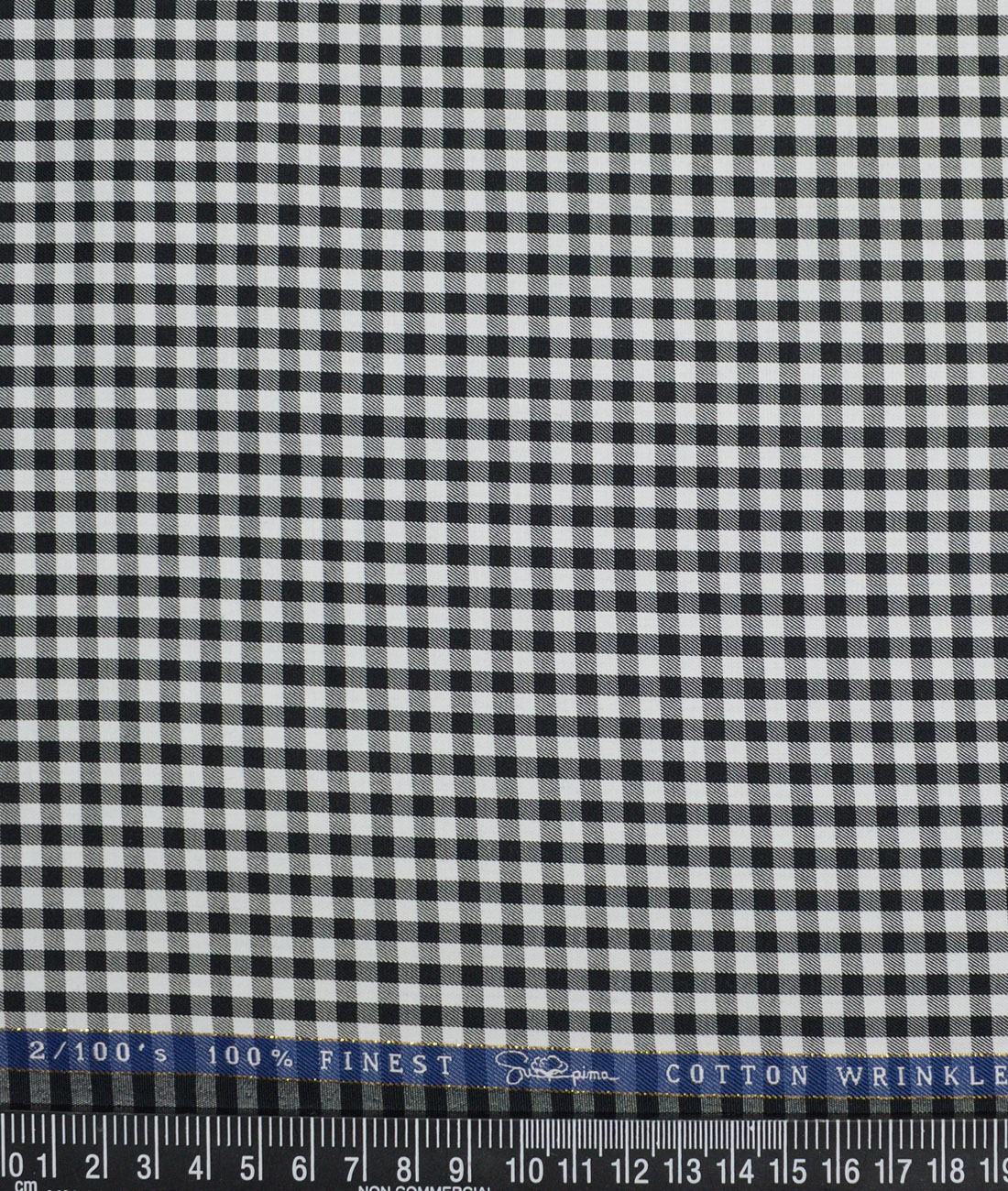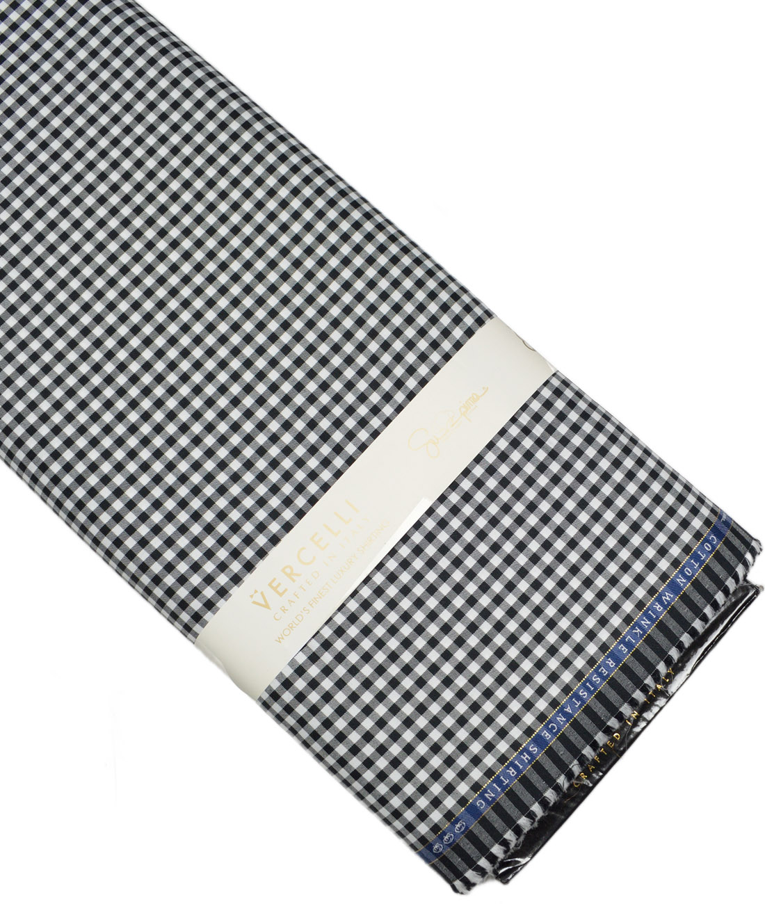 Vercelli Italy 2 Ply 100’s Supima Cotton Checks Shirting Fabric (White & Black)