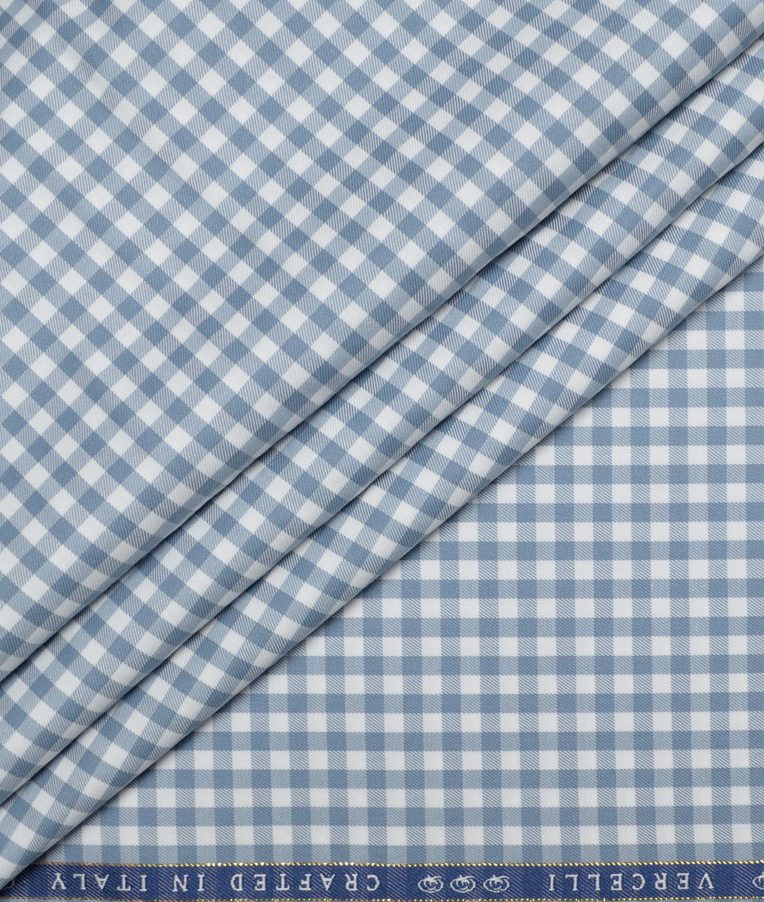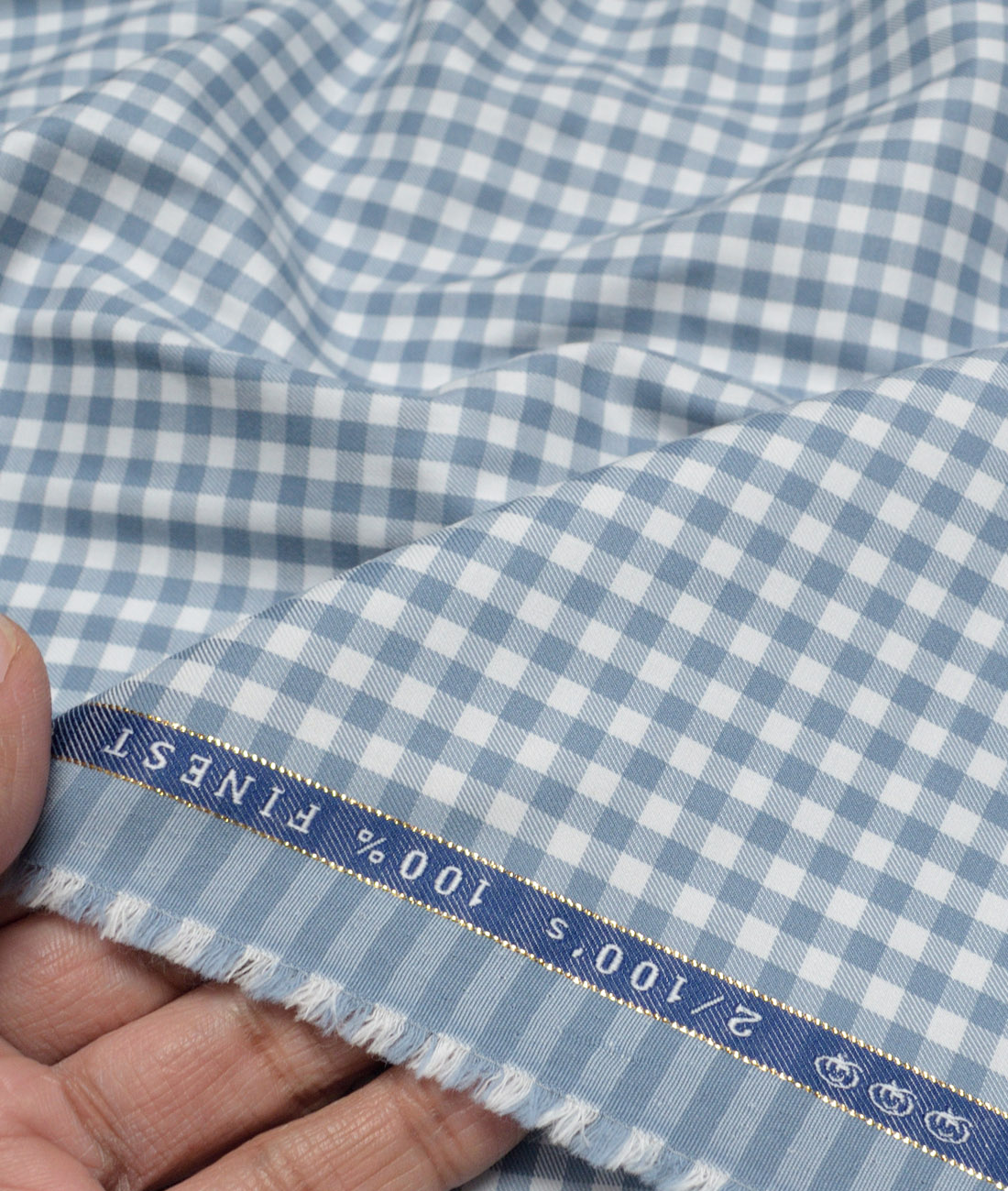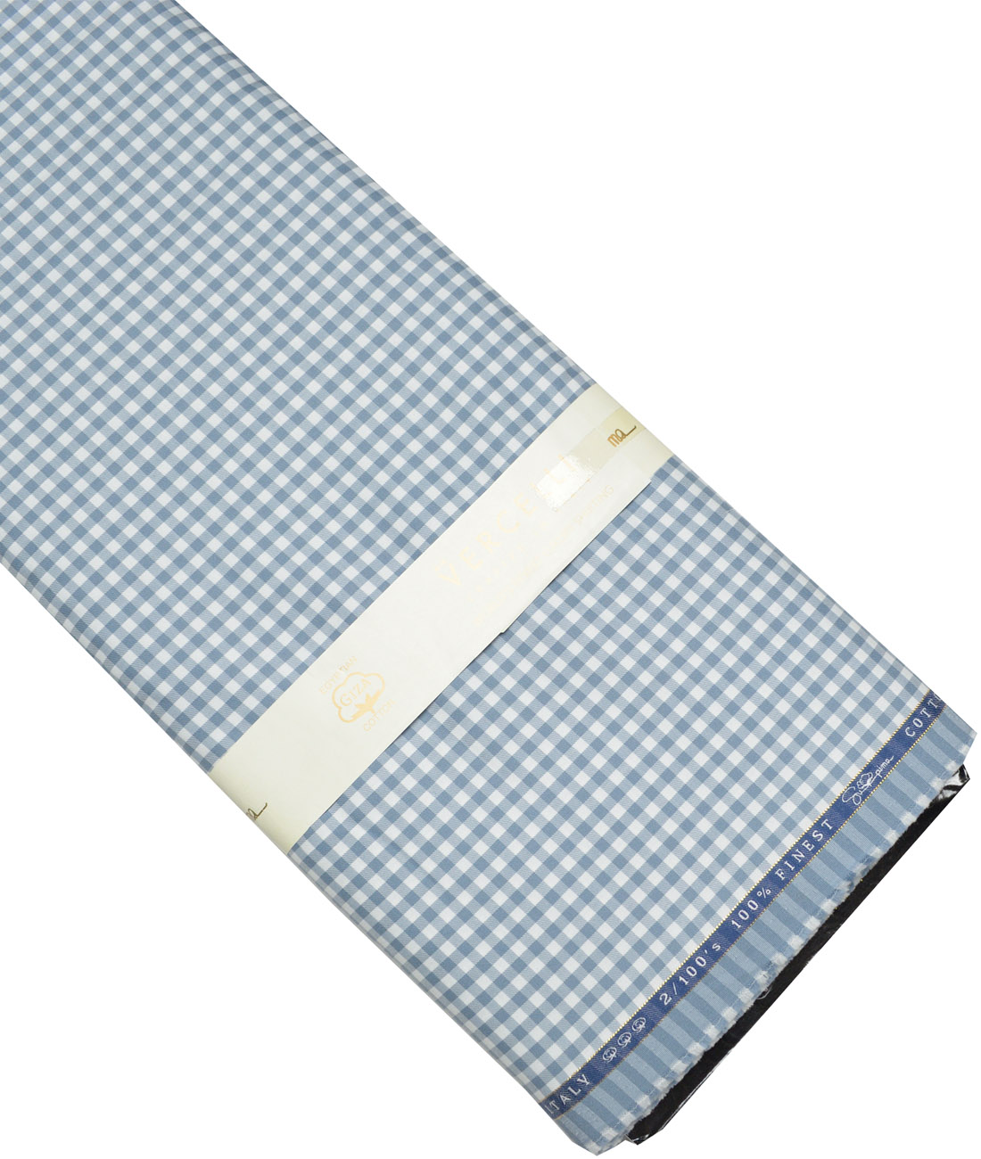 Vercelli Italy 2 Ply 100’s Supima Cotton Checks Shirting Fabric (White & Greyish Blue)