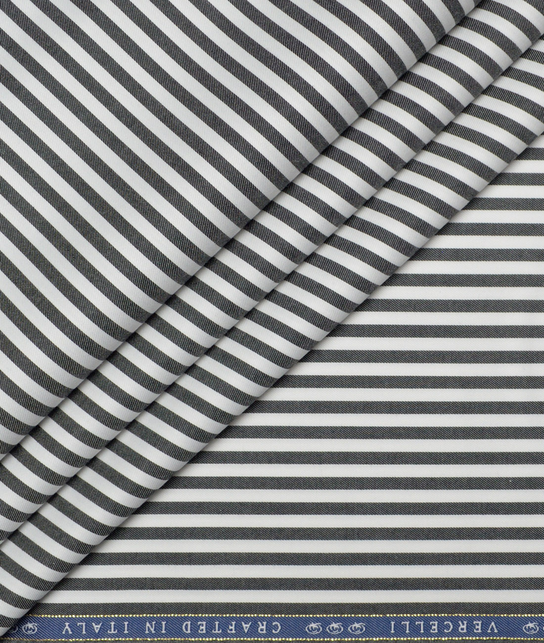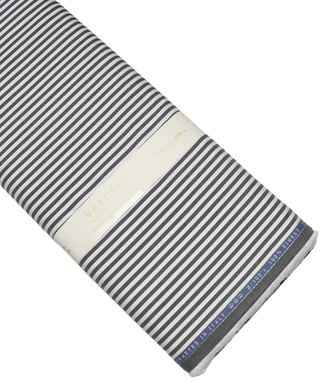 Vercelli Italy 2 Ply 100’s Supima Cotton Striped Shirting Fabric (White & Black)