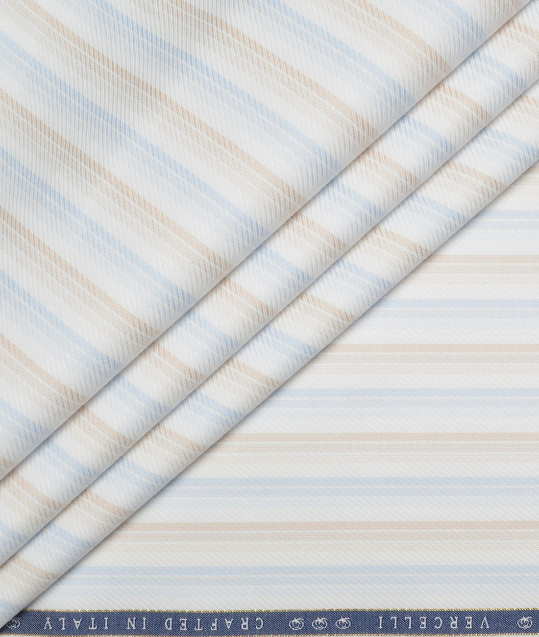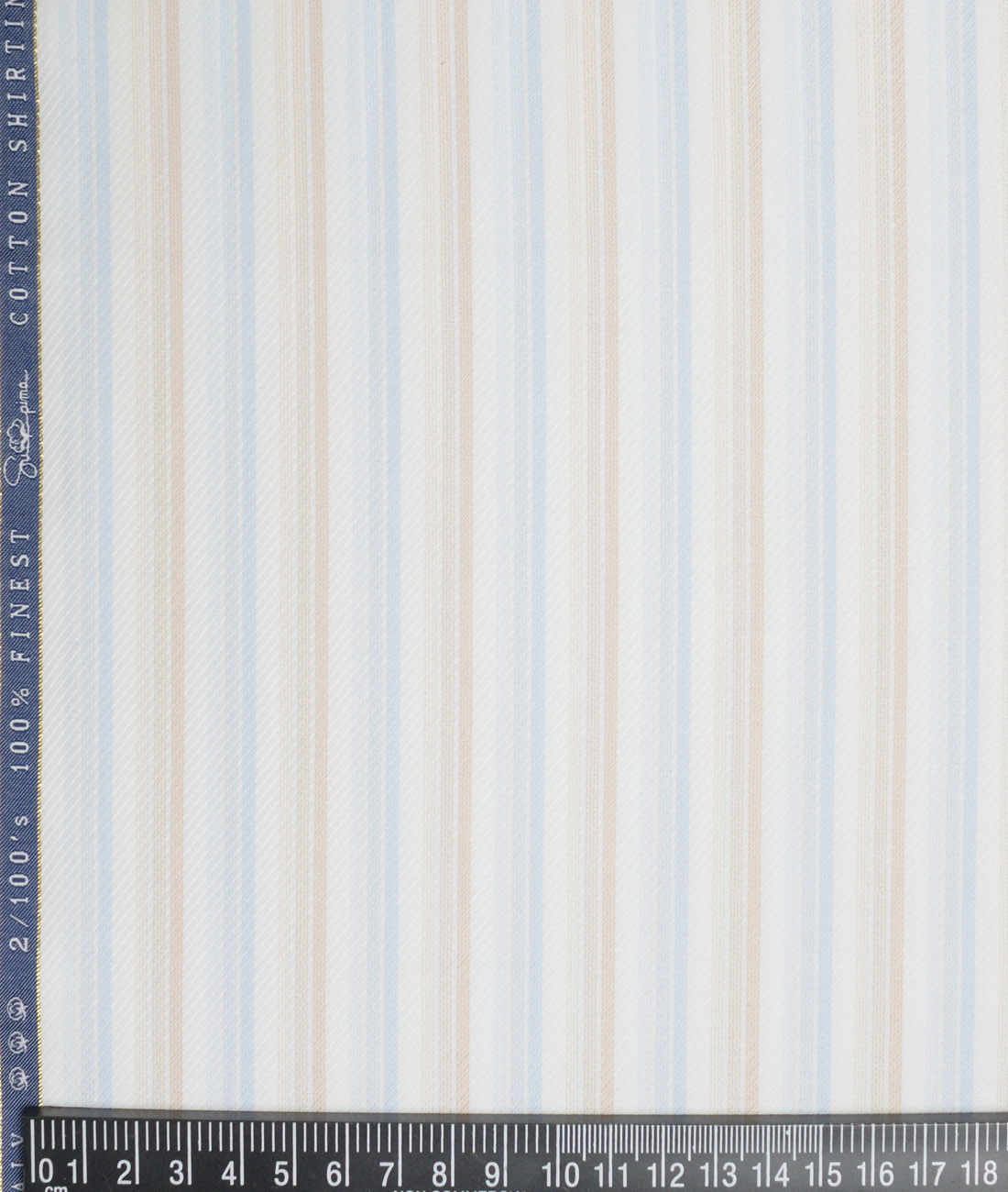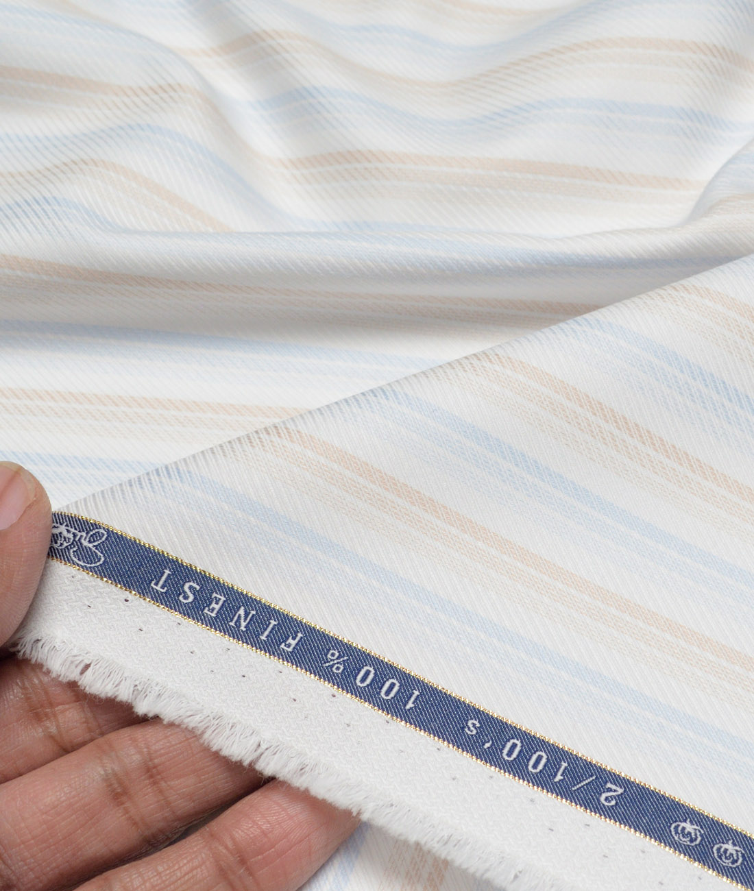 Vercelli Italy 2 Ply 100’s Supima Cotton Striped Shirting Fabric (White & Blue)
