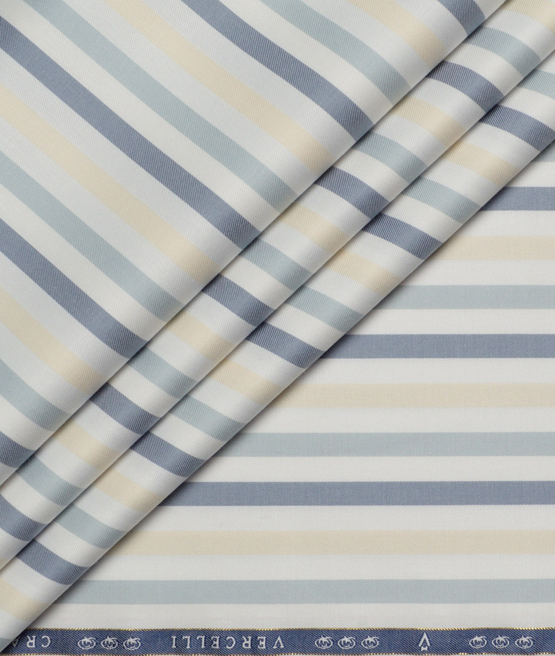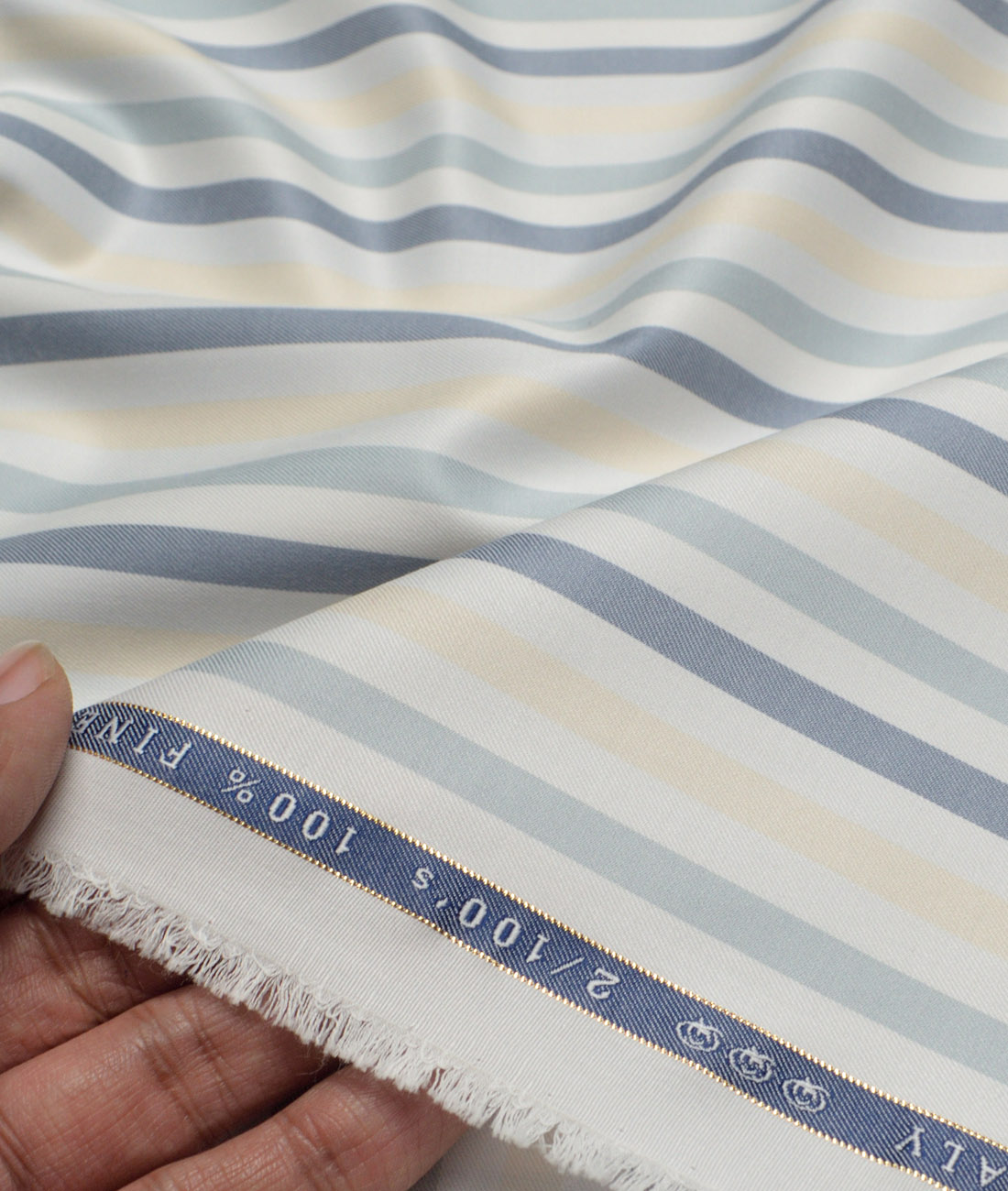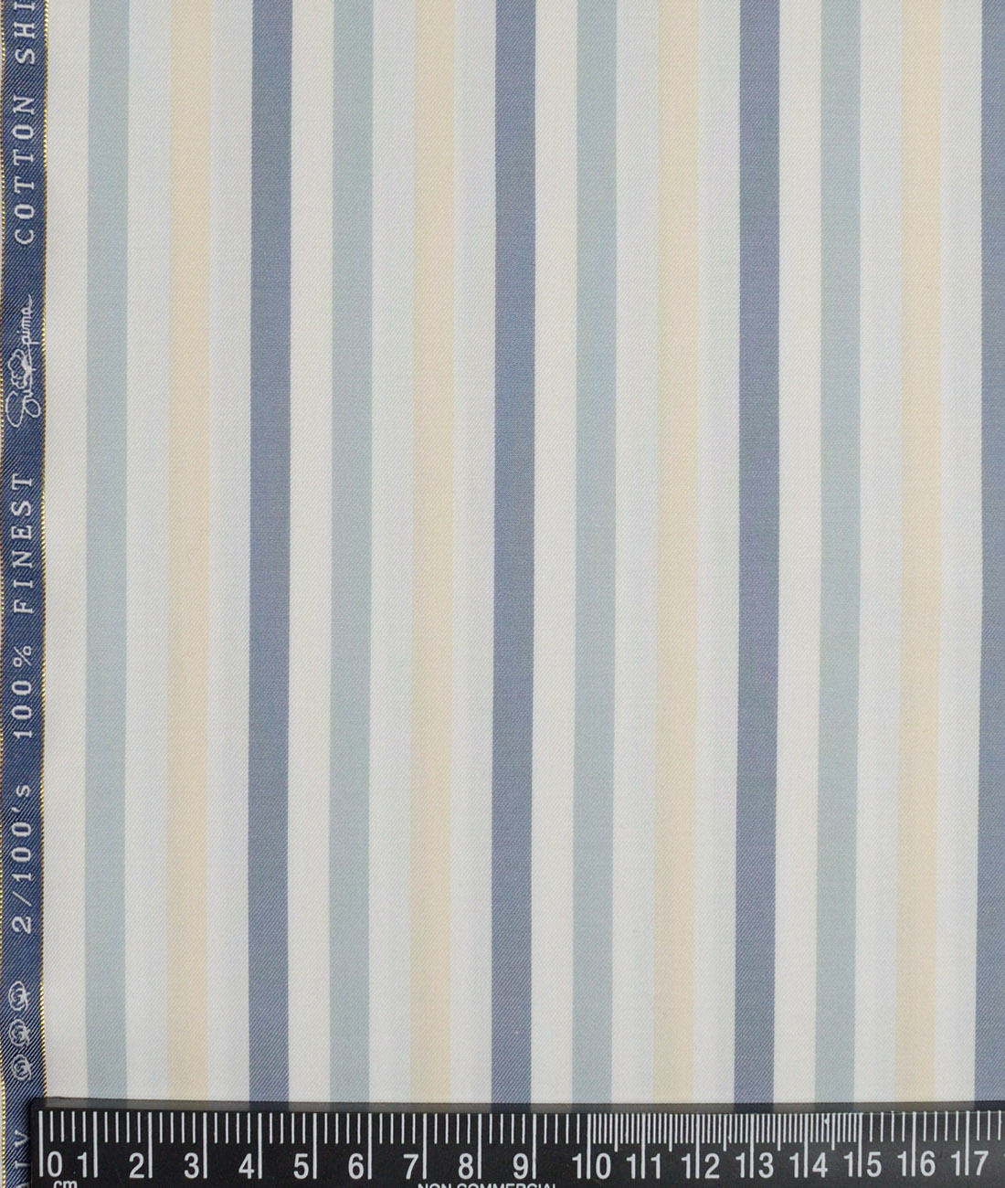Vercelli Italy 2 Ply 100’s Supima Cotton Striped Shirting Fabric (White & Blue)