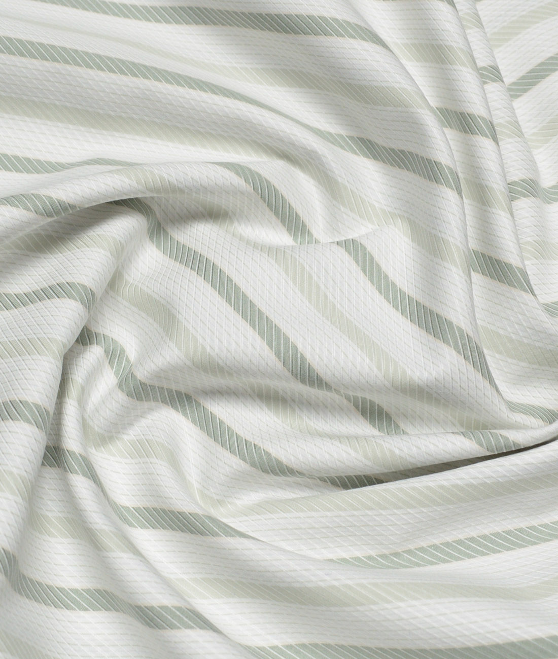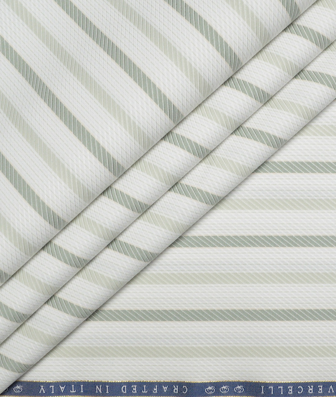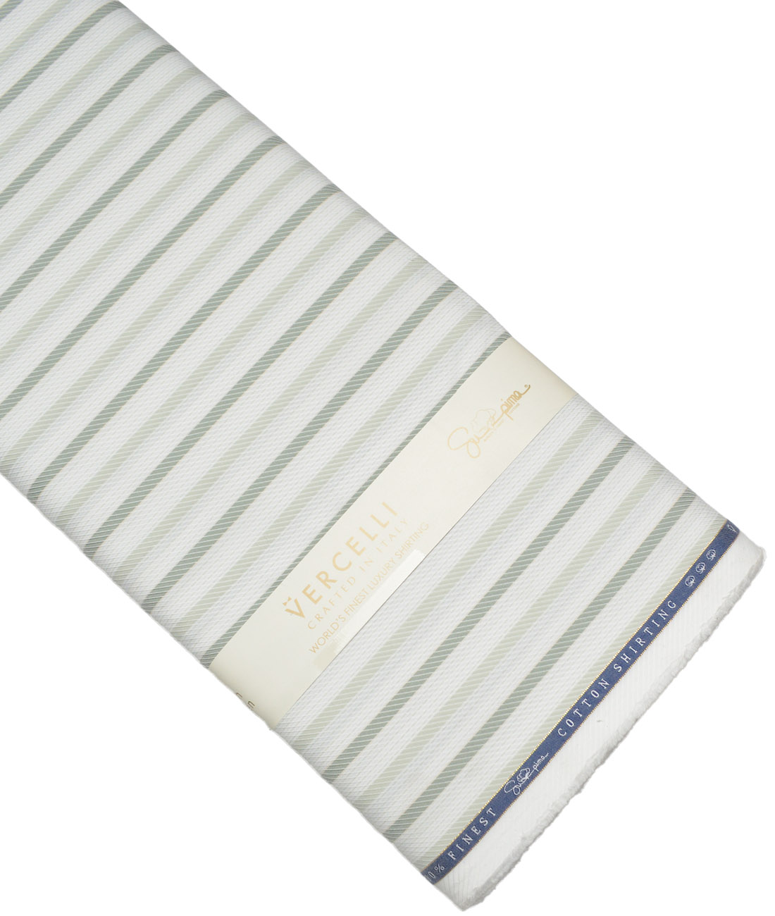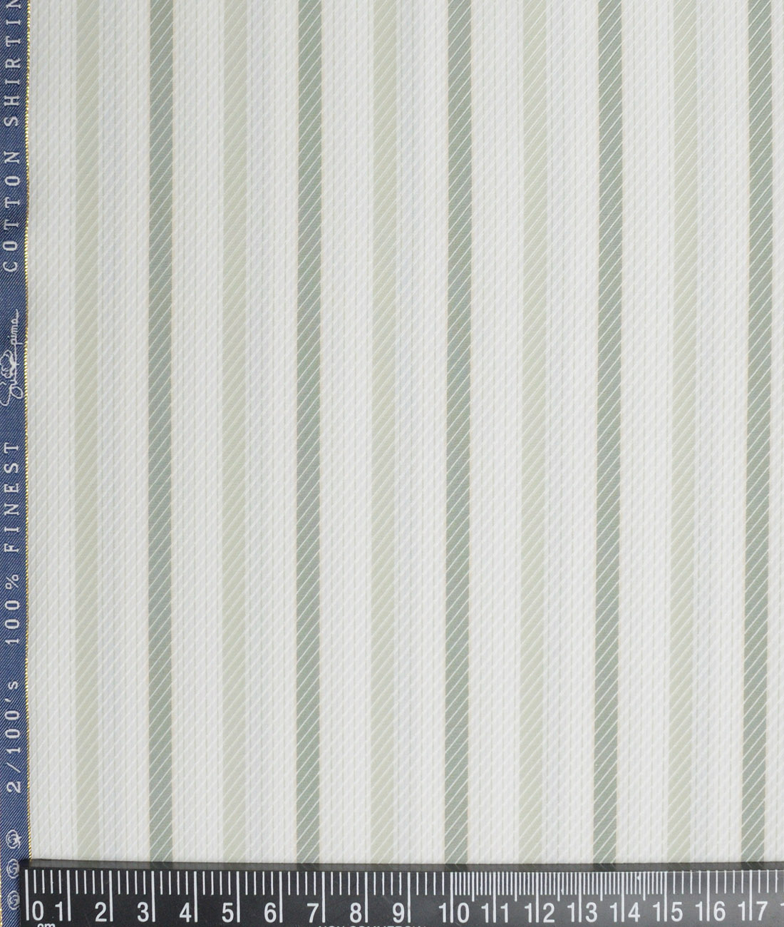 Vercelli Italy 2 Ply 100’s Supima Cotton Striped Shirting Fabric (White & Green)