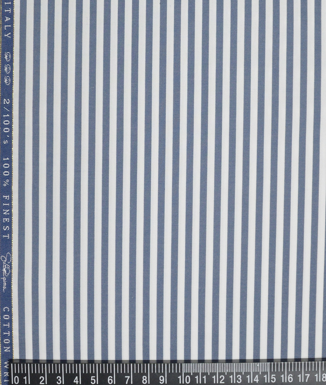 Vercelli Italy 2 Ply 100’s Supima Cotton Striped Shirting Fabric (White & Greyish Blue)