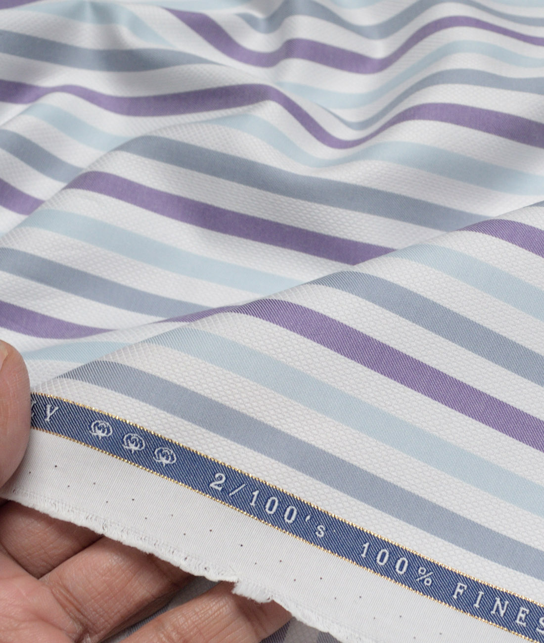Vercelli Italy 2 Ply 100’s Supima Cotton Striped Shirting Fabric (White & Multi)