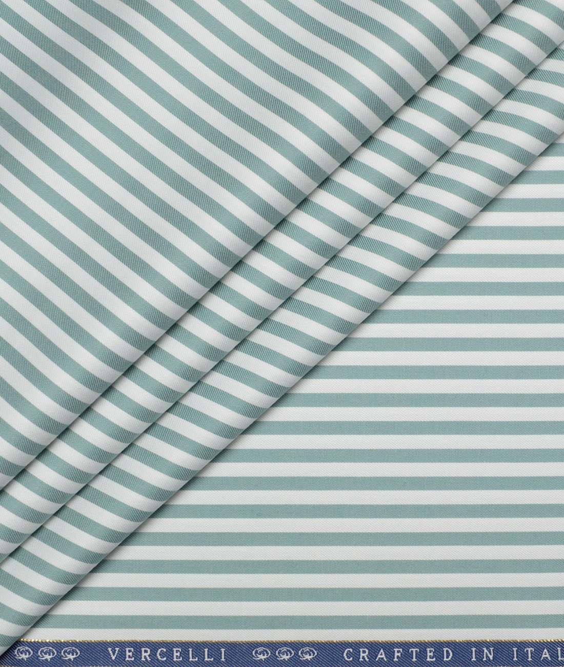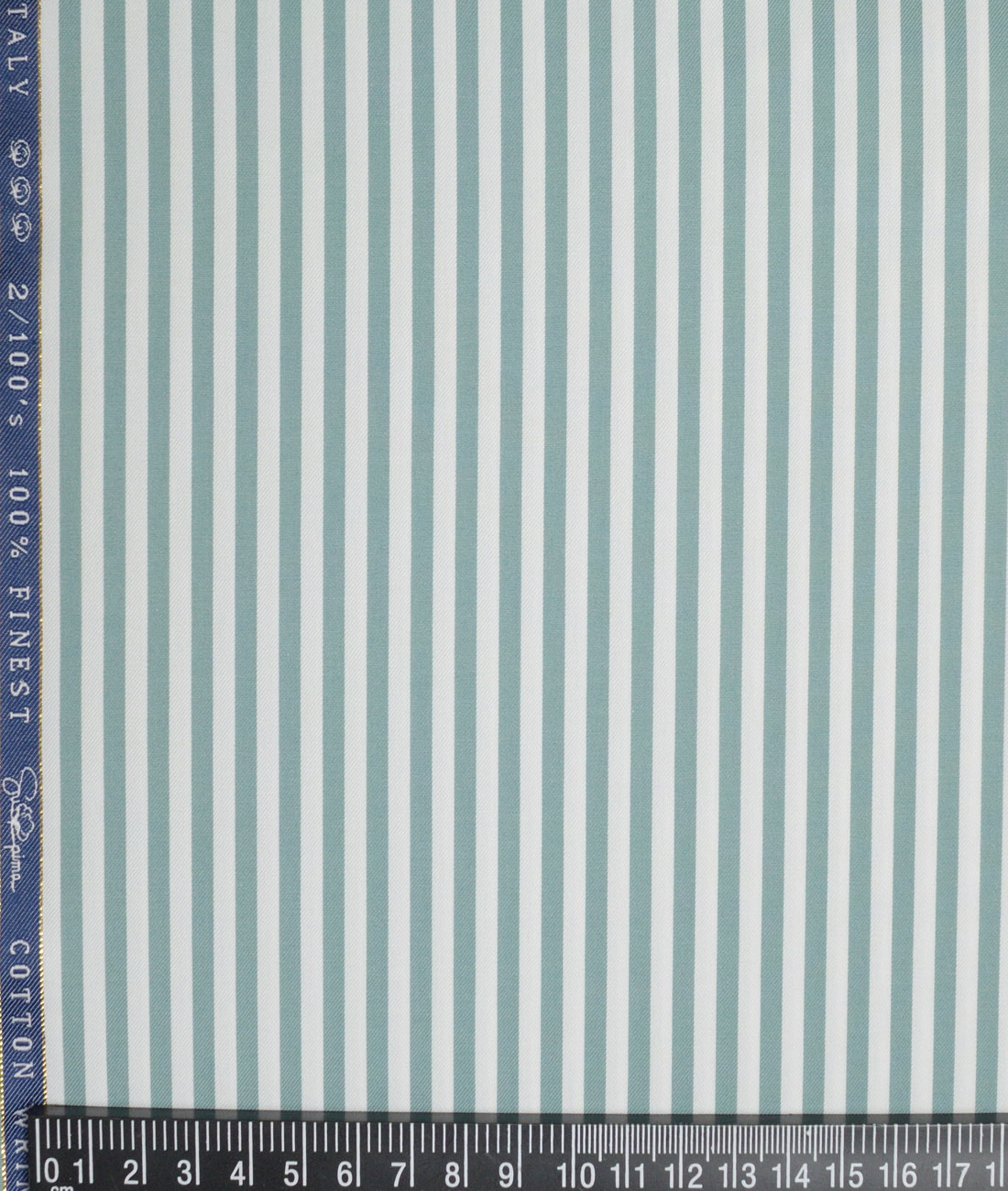Vercelli Italy 2 Ply 100’s Supima Cotton Striped Shirting Fabric (White & Teal Green)