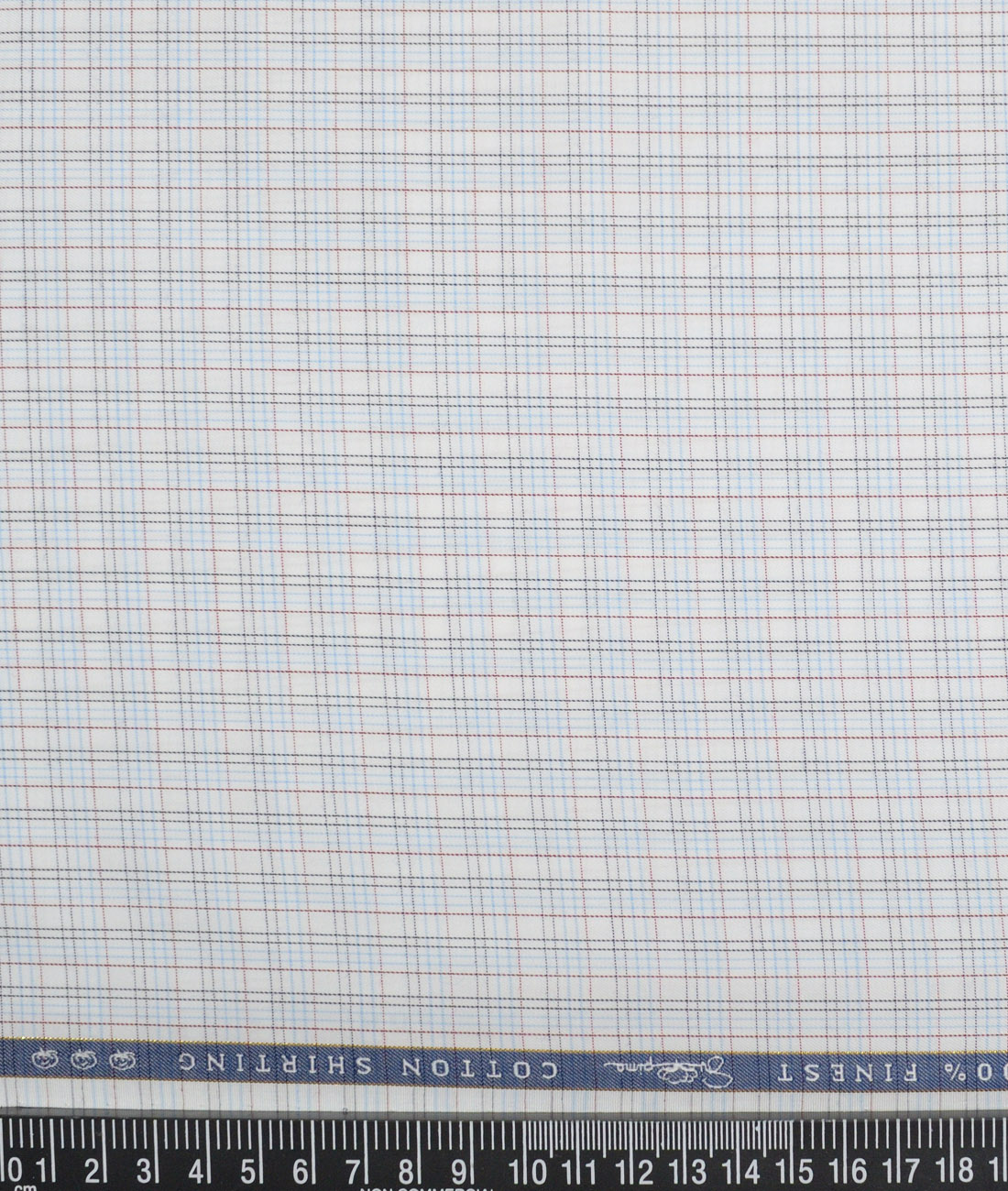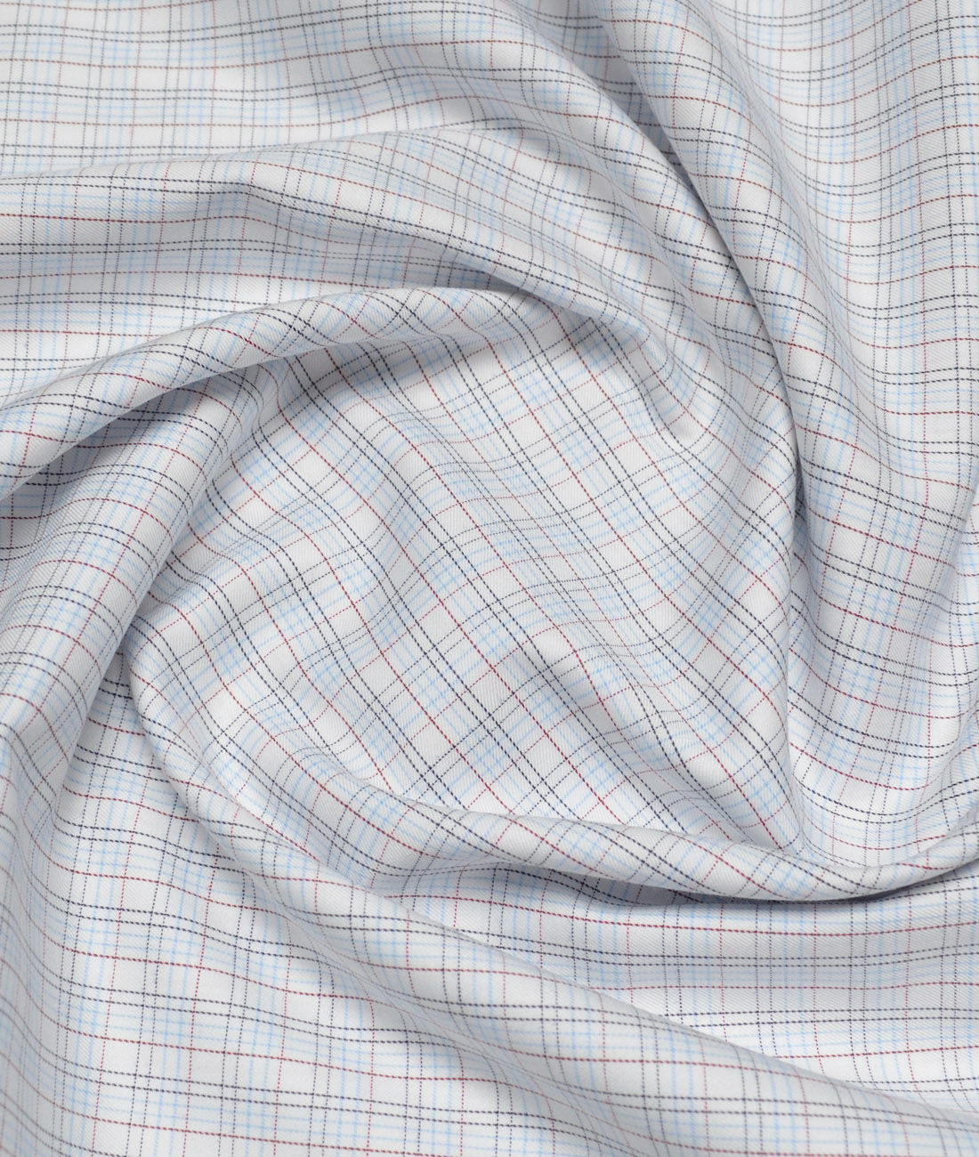 Vercelli Italy 2 Ply 120’s Supima Cotton Checks Shirting Fabric (White & Sky Blue)