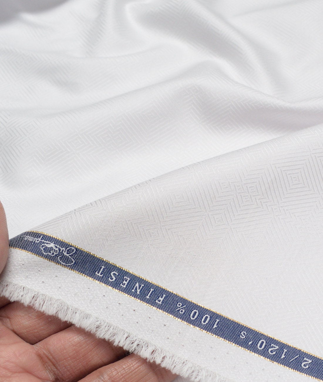 Vercelli Italy 2 Ply 120’s Supima Cotton Self Design Shirting Fabric (White)