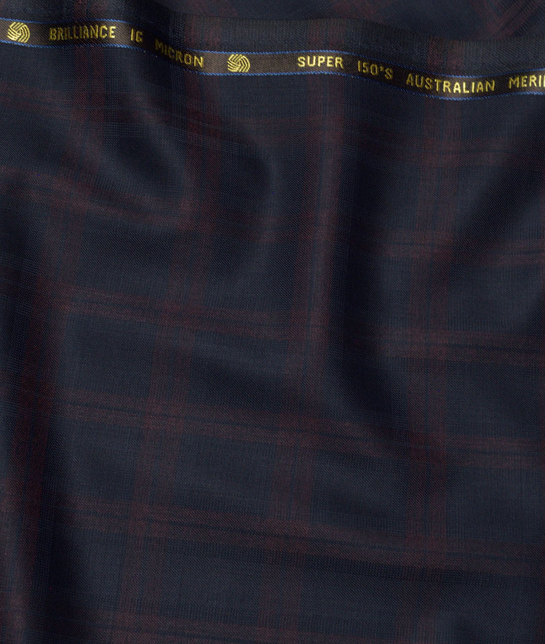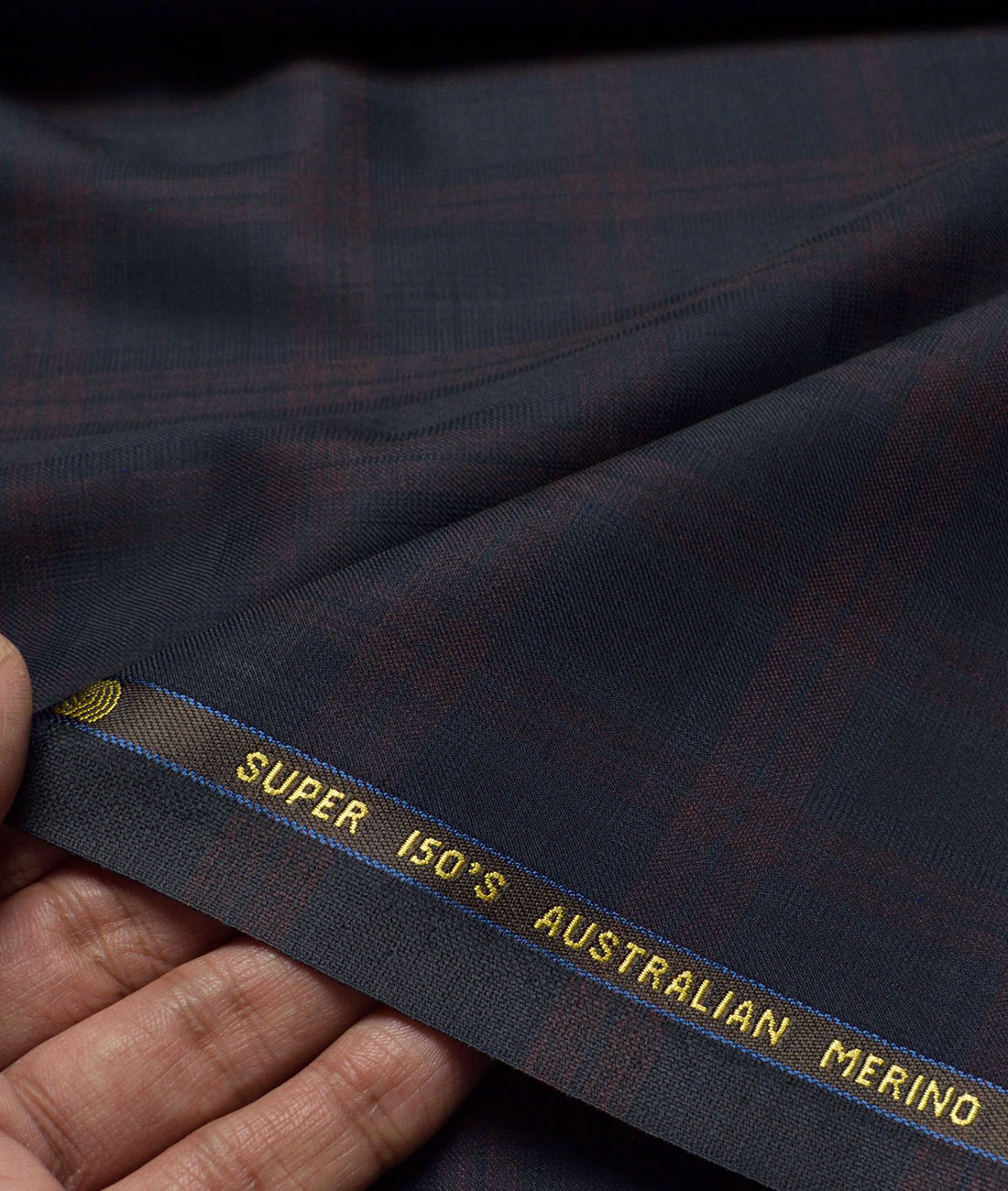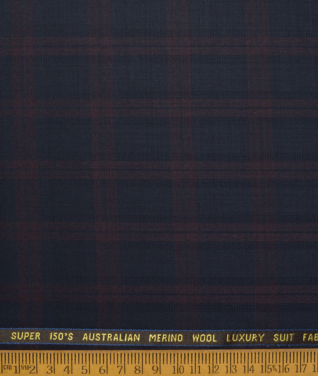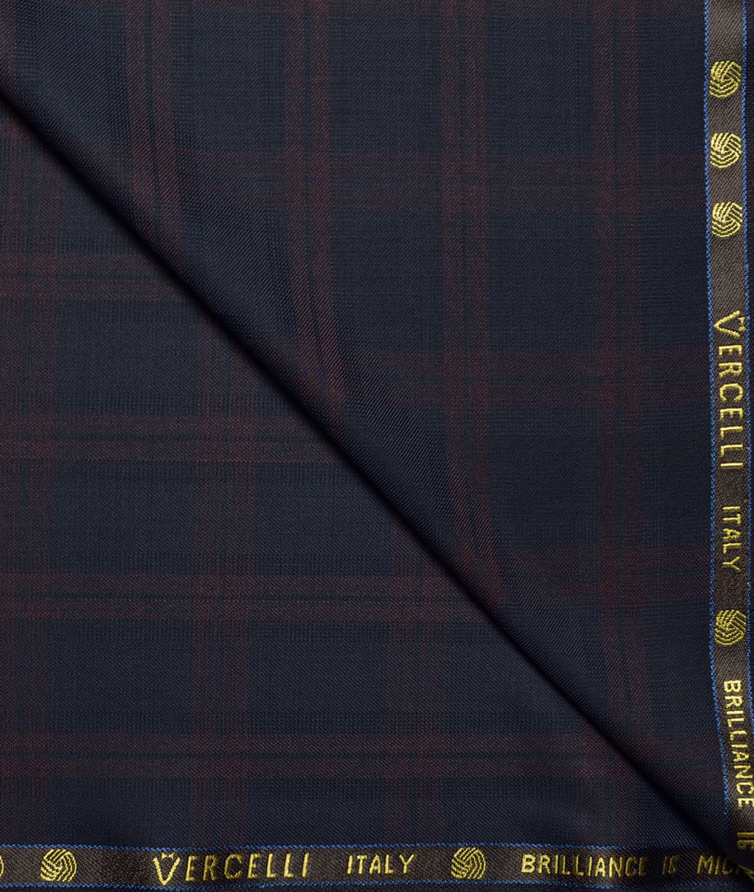 Vercelli Italy Super 150’s Checks 70% Merino Wool Suiting Fabric (Dark Blue)