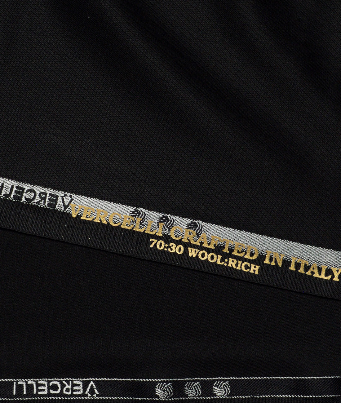 Vercelli Italy Super 180’s Solids 70% Merino Wool Suiting Fabric (Jet Black)